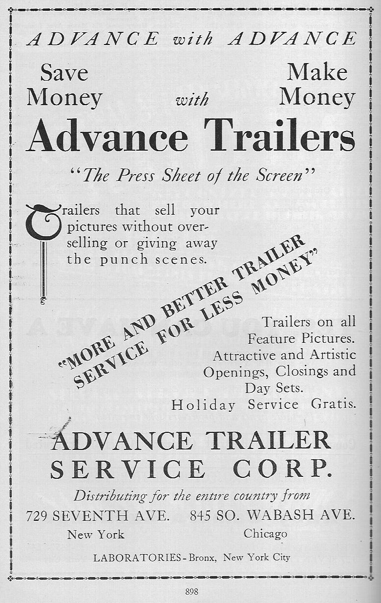 Paramount was quickest to catch on to trailers as a real advertising form. In 1916, they started distributing their own trailers, and in 1919, they set up their own trailer division within the company.
