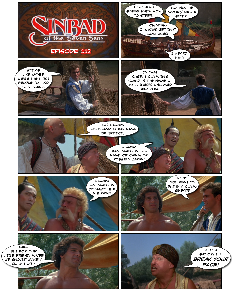 Join Sinbad and his merry men as they embark on a dubiously-conceived quest to foil a dubiously-conceived but probably evil plot by the evil vizier Jaffar! Sinbad Comic is a screen-cap comic based on the incredible, incomparable, and inexplicable 1989 Lou Ferrigno film, Sinbad of the Seven Seas.