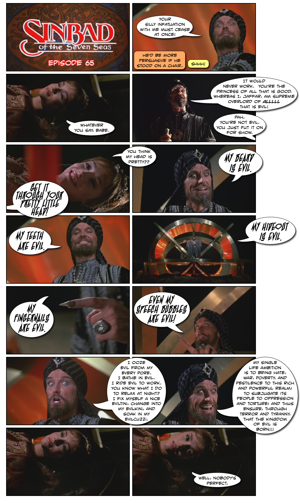 Join Sinbad and his merry men as they embark on a dubiously-conceived quest to foil a dubiously-conceived but probably evil plot by the evil vizier Jaffar! Sinbad Comic is a screen-cap comic based on the incredible, incomparable, and inexplicable 1989 Lou Ferrigno film, Sinbad of the Seven Seas.